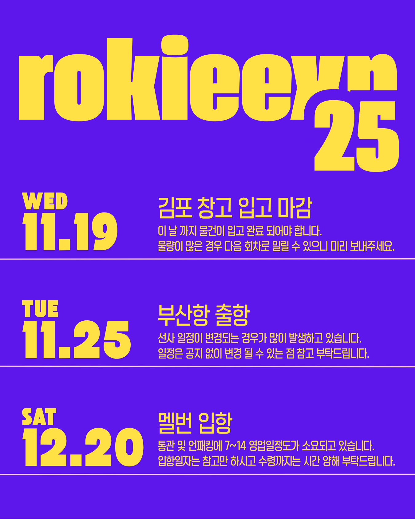 📦🚢 ROKIEEXP 25회차 선박택배 일정 안내