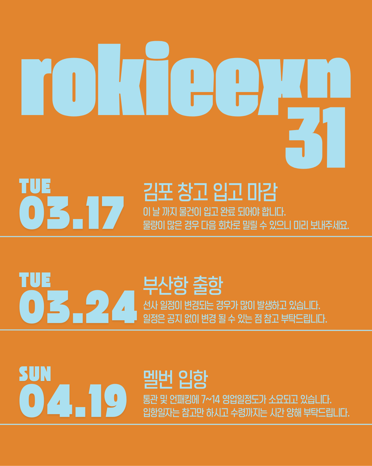 No.28  [멜번행 선박택배] 2026년 3월 일정 안내 (31차)