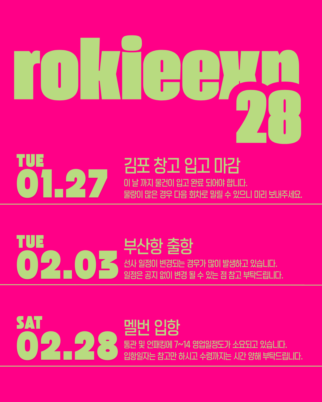 No.27  [멜번행 선박택배] 2026년 1월 일정 안내 (28차)